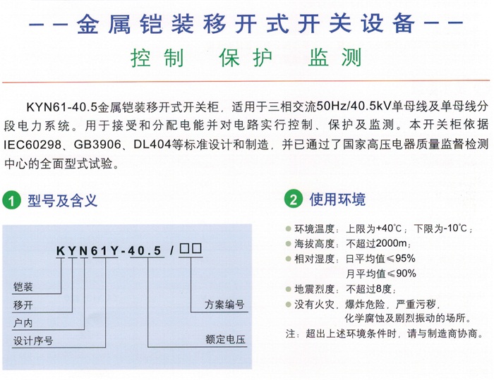 •   产品名称:KYN61Y-40.5金属铠装移开式开关设备